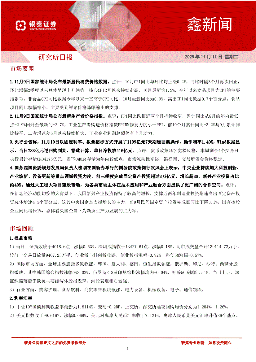 银泰证券-研究所日报:鑫新闻-251114