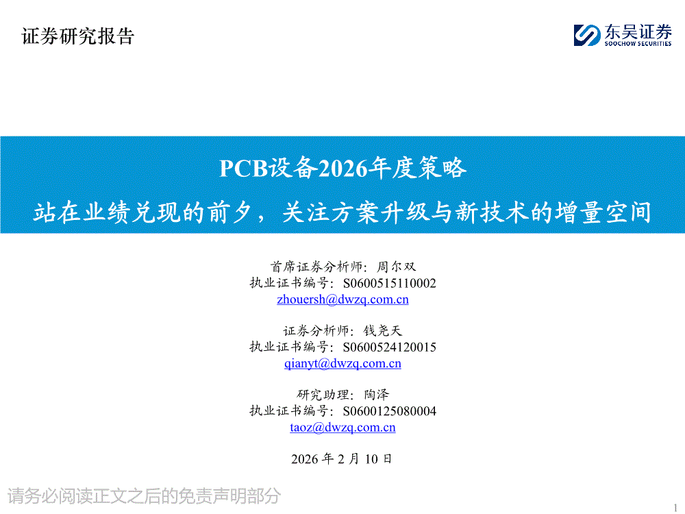 PCB设备行业:东吴证券-PCB设备行业2026年度策略:站在业绩兑现的前夕,关注方案升级与新技术的增量空间-260210