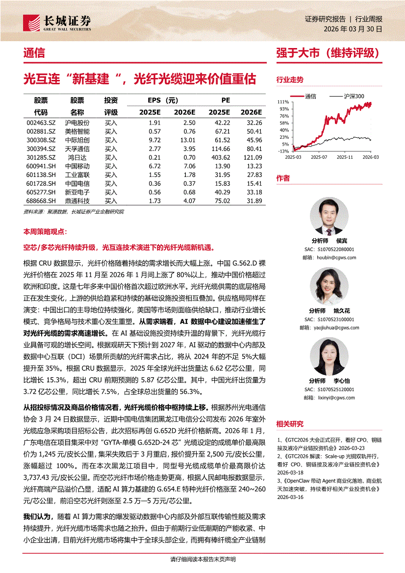 通信行业:长城证券-通信行业周报:光互连“新基建“,光纤光缆迎来价值重估-260330