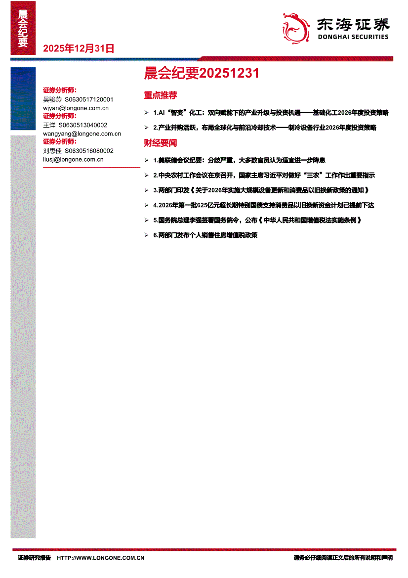 东海证券-晨会纪要-251231