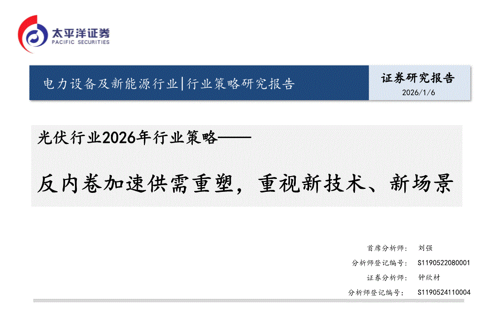 光伏行业:太平洋证券-光伏行业2026年行业策略:反内卷加速供需重塑,重视新技术、新场景-260106