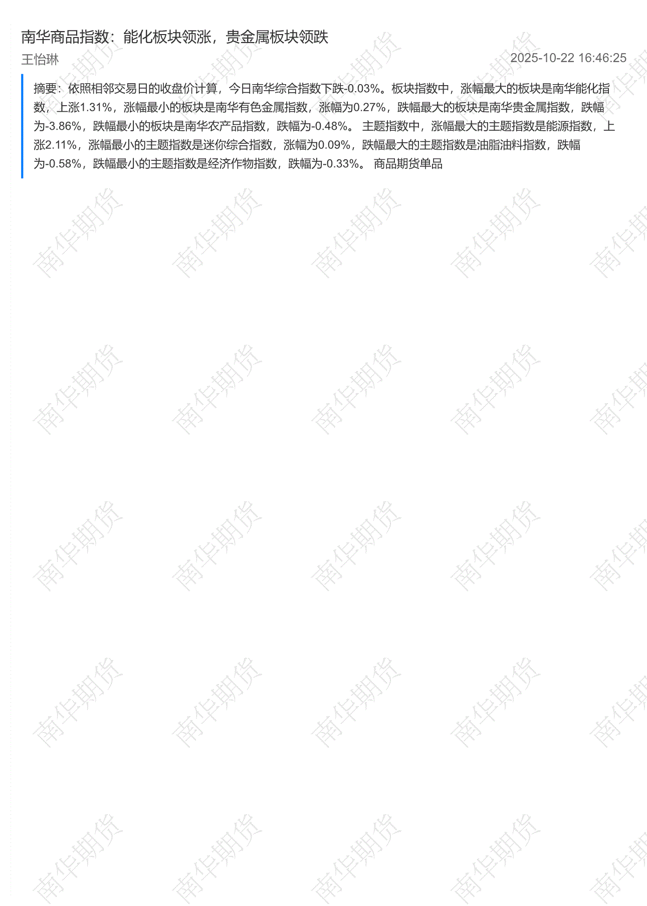 南华期货-商品指数:能化板块领涨,贵金属板块领跌-251022