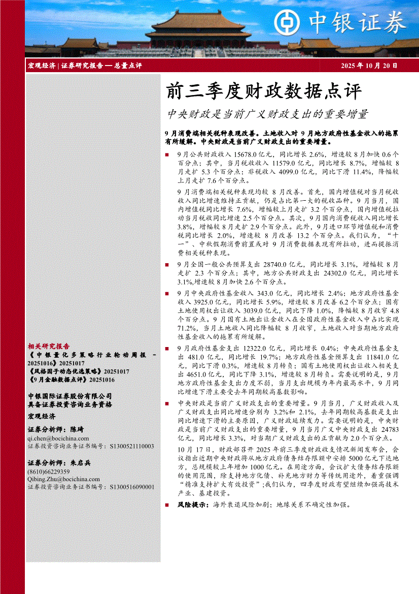 中银国际-前三季度财政数据点评:中央财政是当前广义财政支出的重要增量-251020