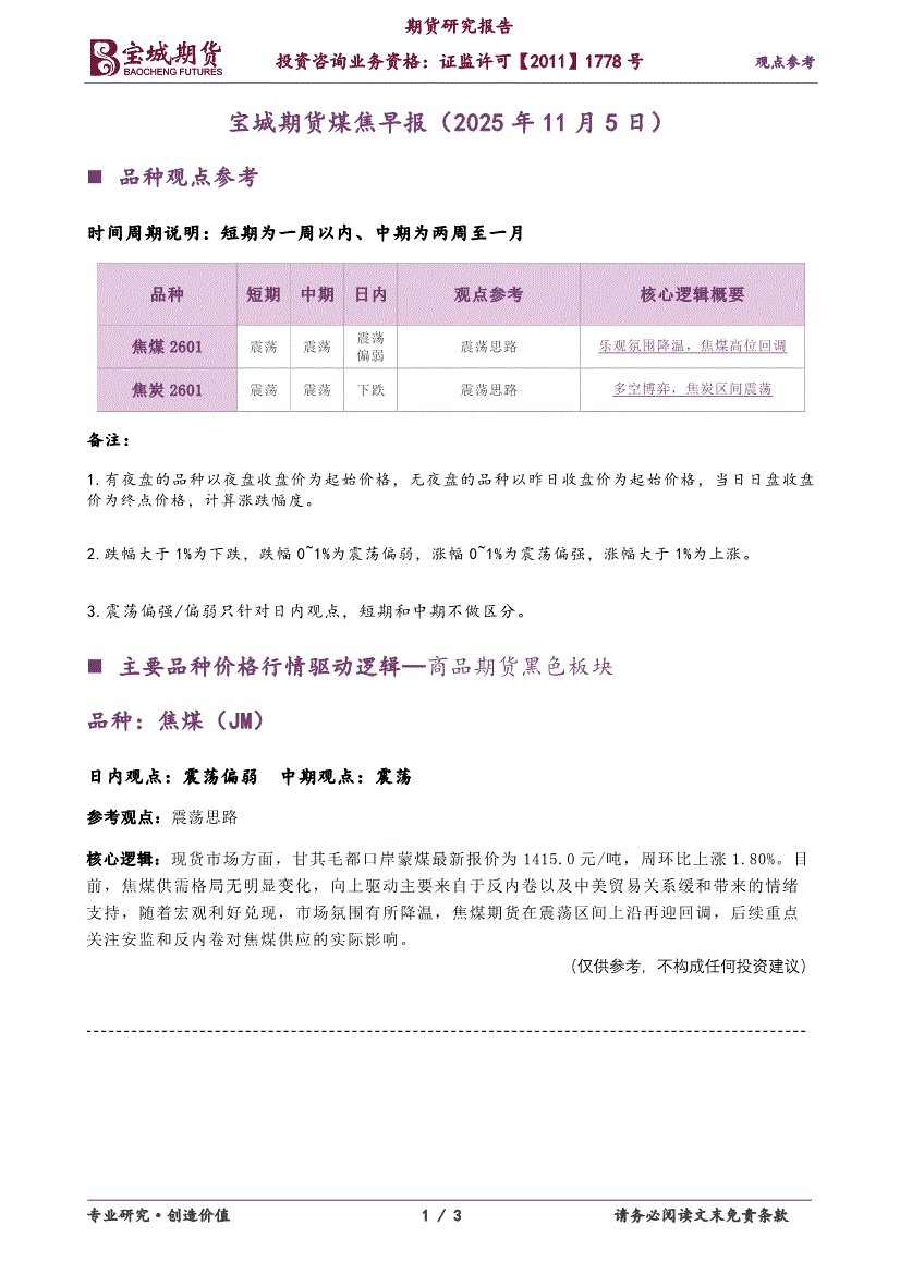 宝城期货-煤焦早报-251105