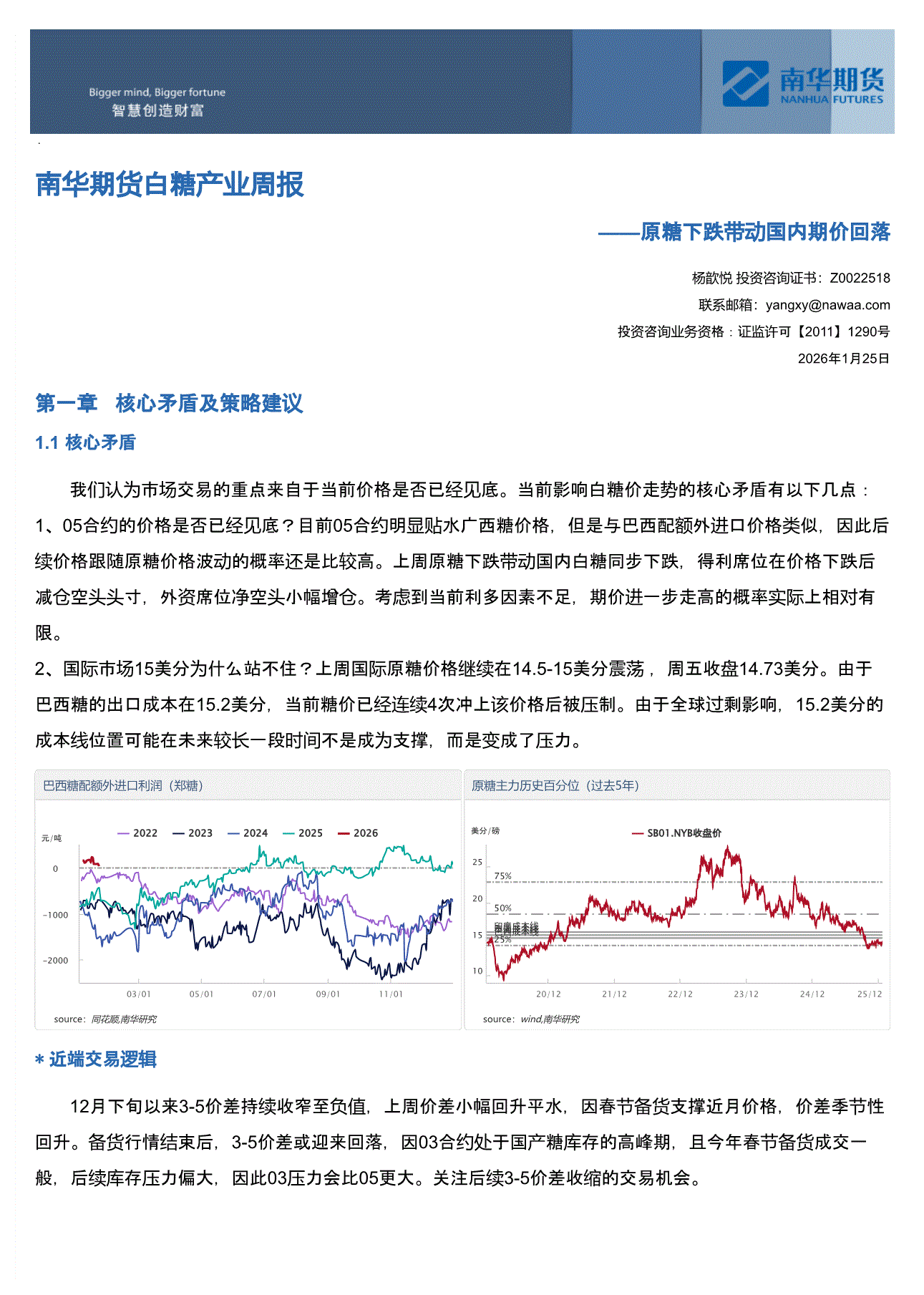 南华期货-白糖产业周报:原糖下跌带动国内期价回落-260125