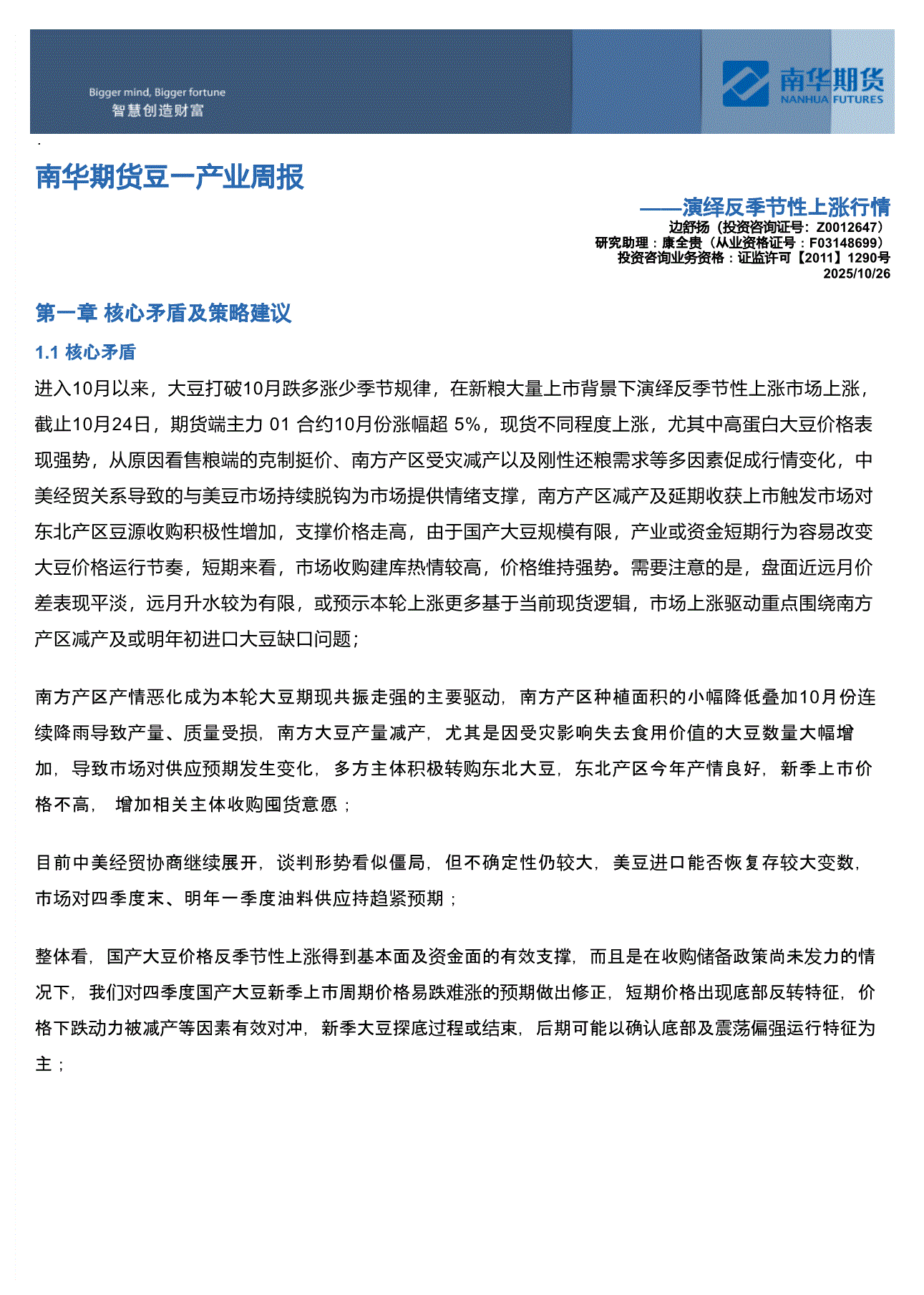 南华期货-豆一产业周报:演绎反季节性上涨行情-251026