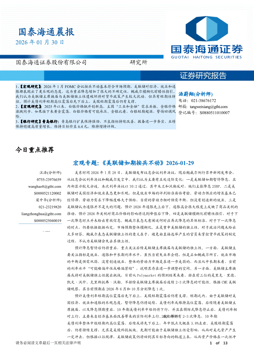 国泰海通证券-晨报-260130