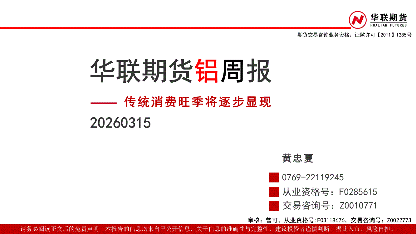 华联期货-铝周报:传统消费旺季将逐步显现-260315