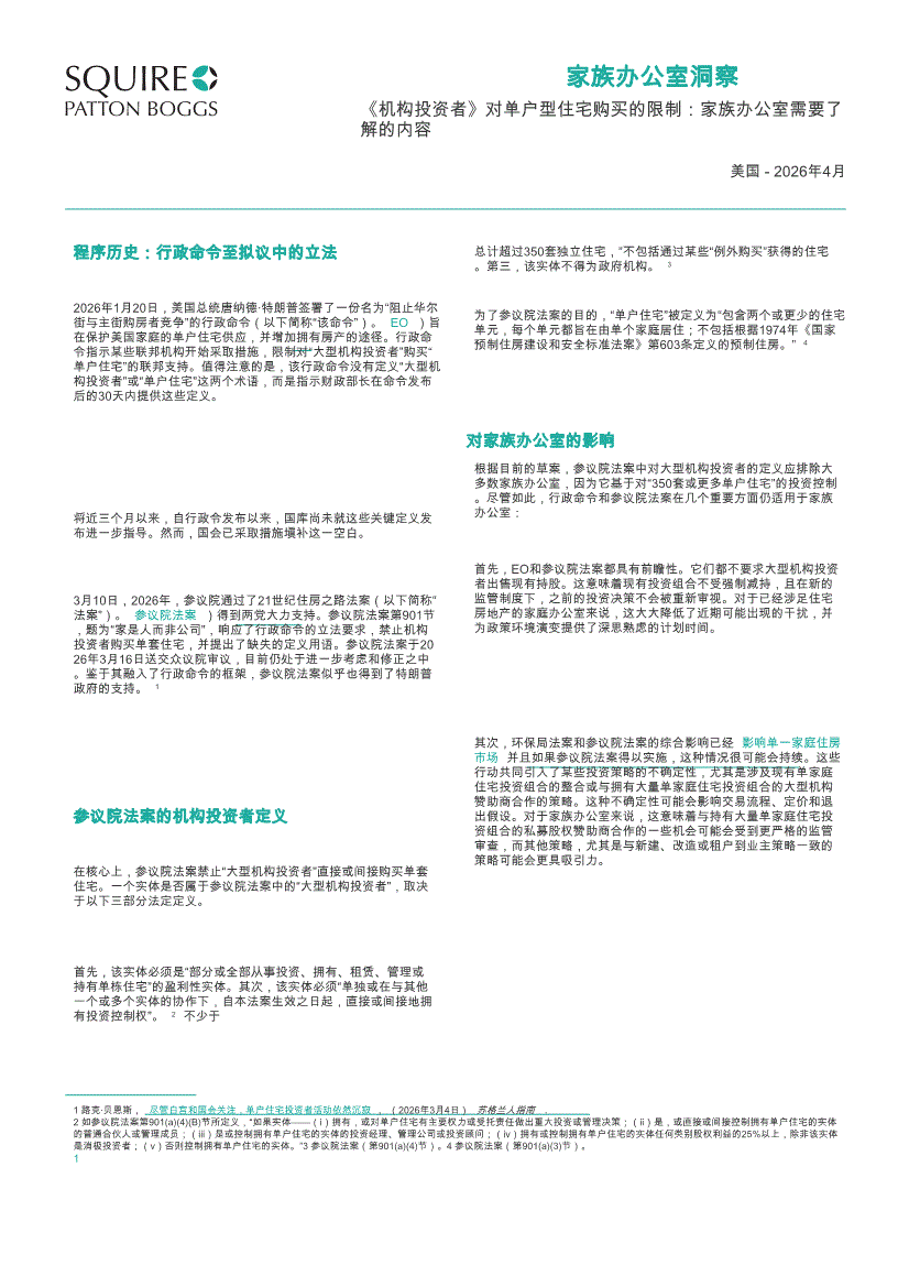 翰宇国际律师事务所-家族办公室洞察:《机构投资者》对单户型住宅购买的限制,家族办公室需要了解的内容-260427