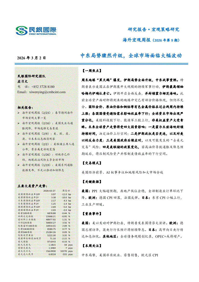 民银国际-海外宏观周报(2026年第9期):中东局势骤然升级,全球市场面临大幅波动-260302