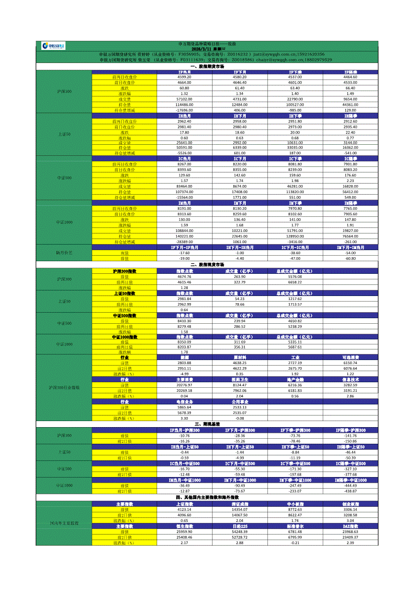 申银万国期货-品种策略日报——股指-260311