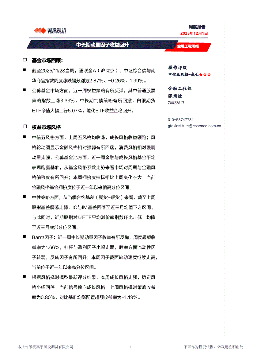 国投期货-金融工程周报:中长期动量因子收益回升-251201