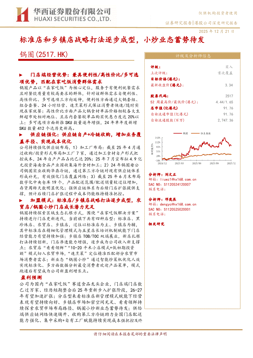 锅圈:华西证券-锅圈-2517.HK-标准店和乡镇店战略打法逐步成型,小炒业态蓄势待发-251221