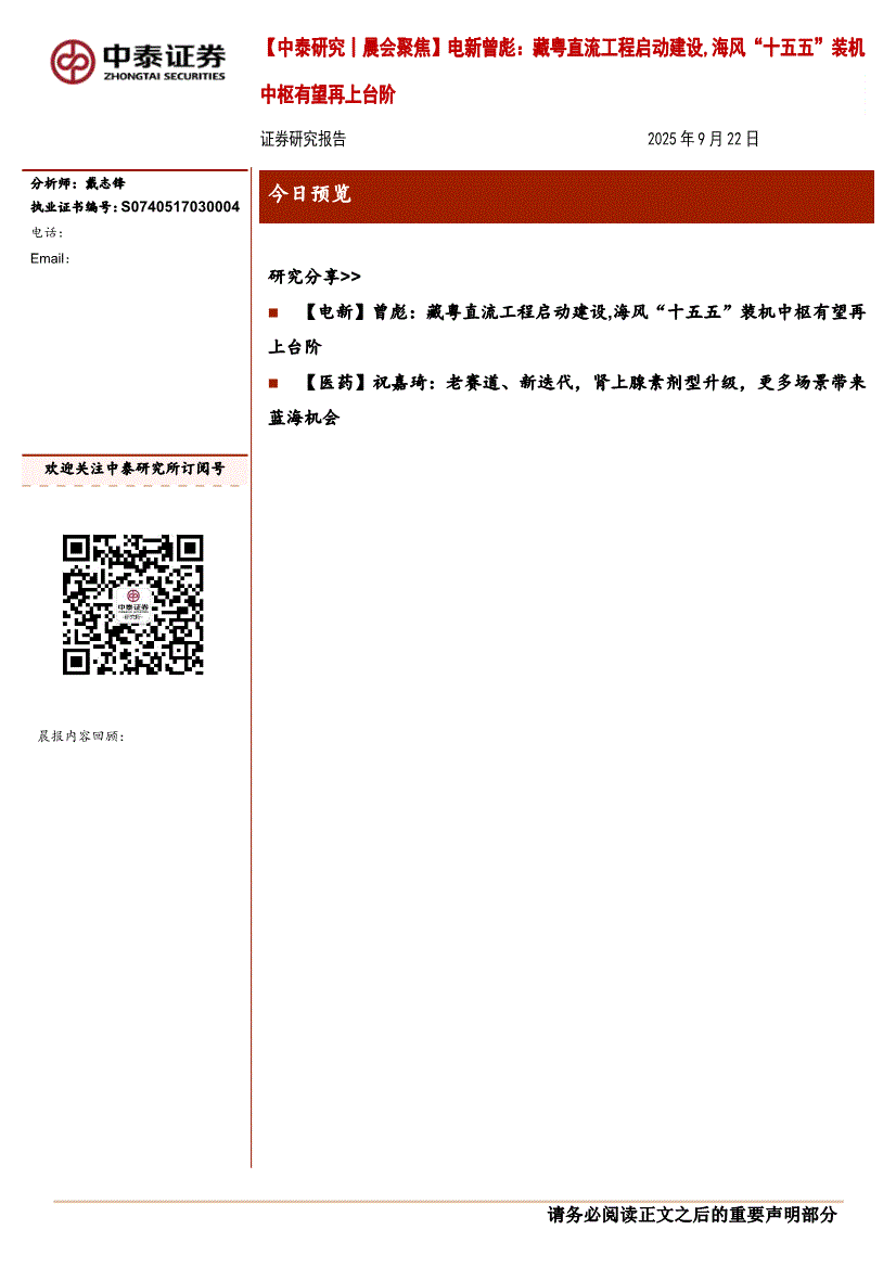 中泰证券-晨会聚焦-250922