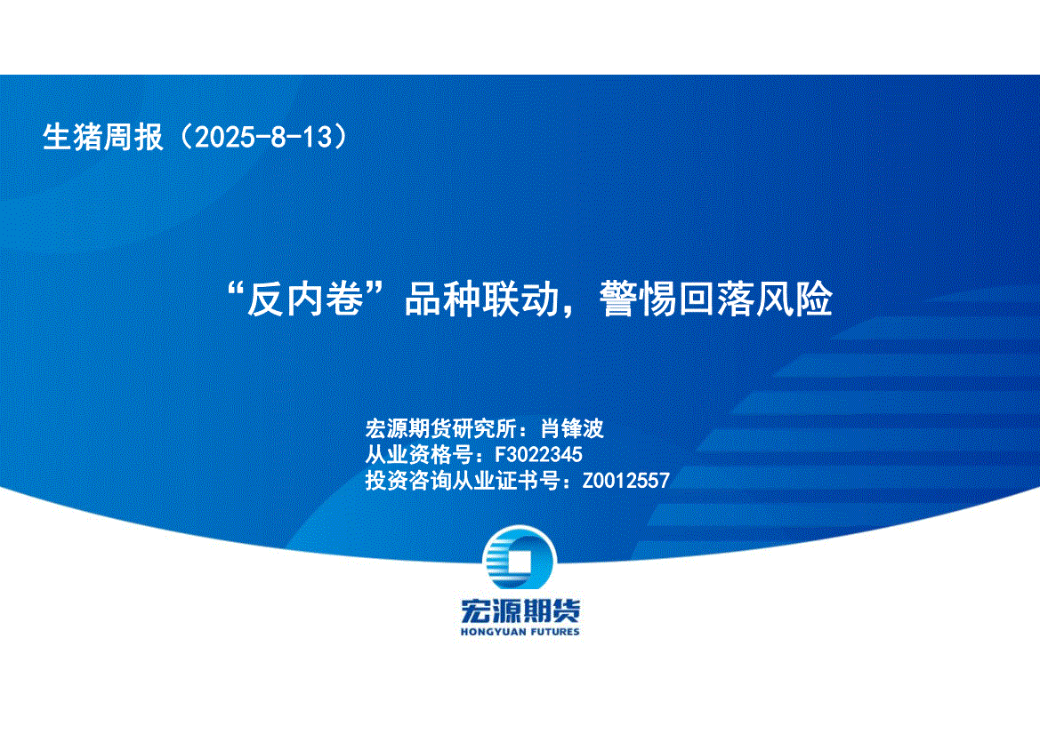 宏源期货-生猪周报:“反内卷”品种联动,警惕回落风险-250813
