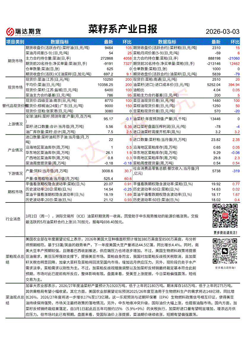 瑞达期货-菜籽系产业日报-260303