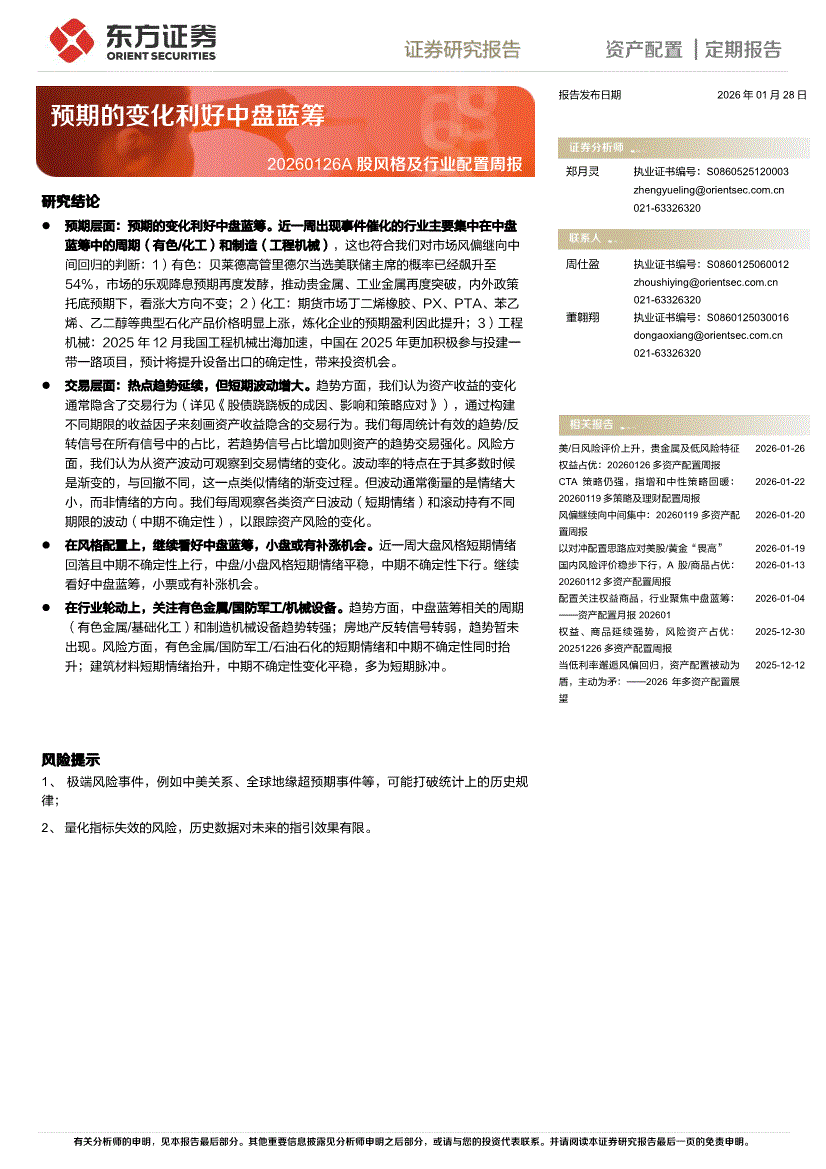 东方证券-A股风格及行业配置周报:预期的变化利好中盘蓝筹-260128