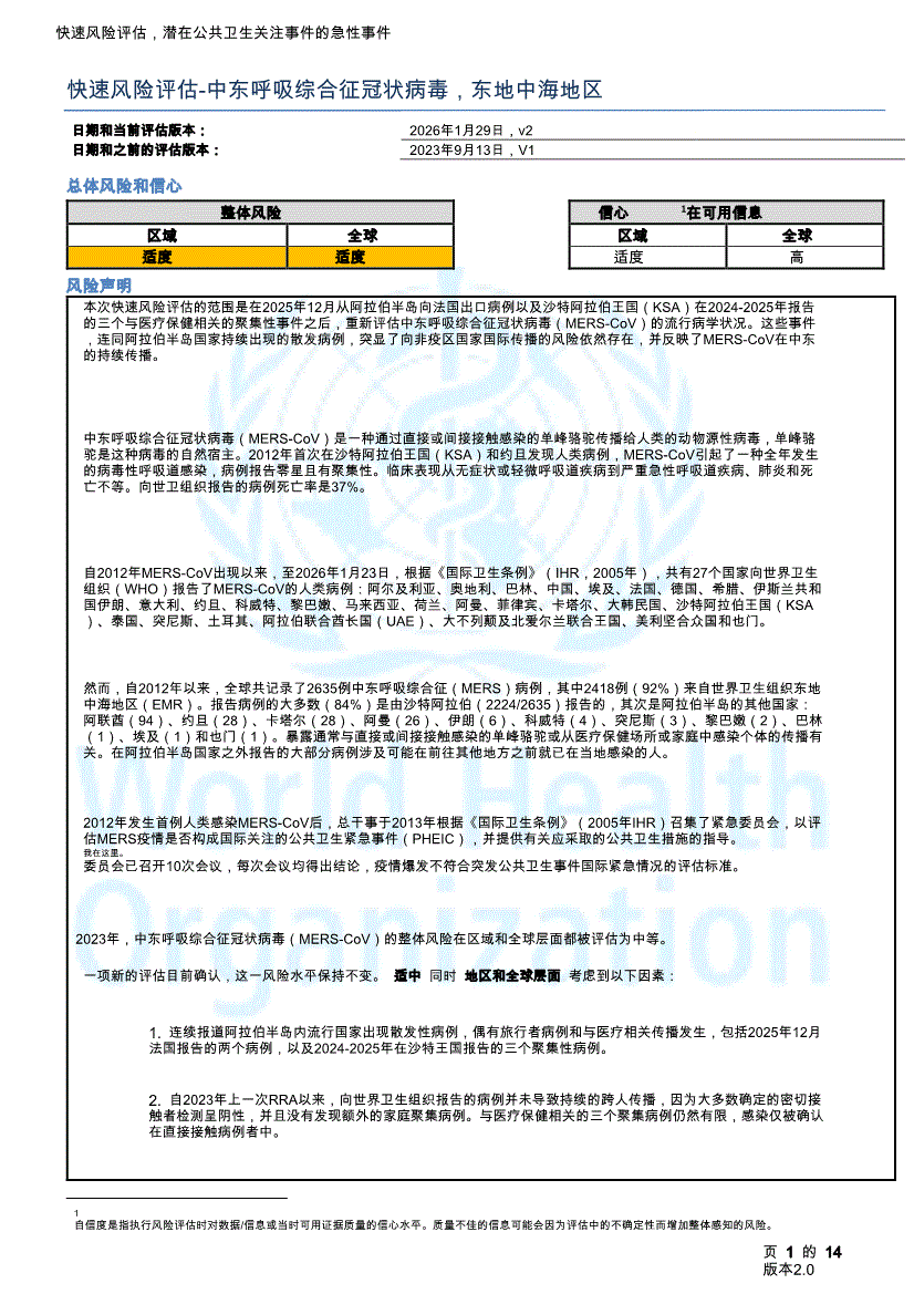 世界卫生组织-快速风险评估~中东呼吸综合征冠状病毒,东地中海地区(英译中)-260204