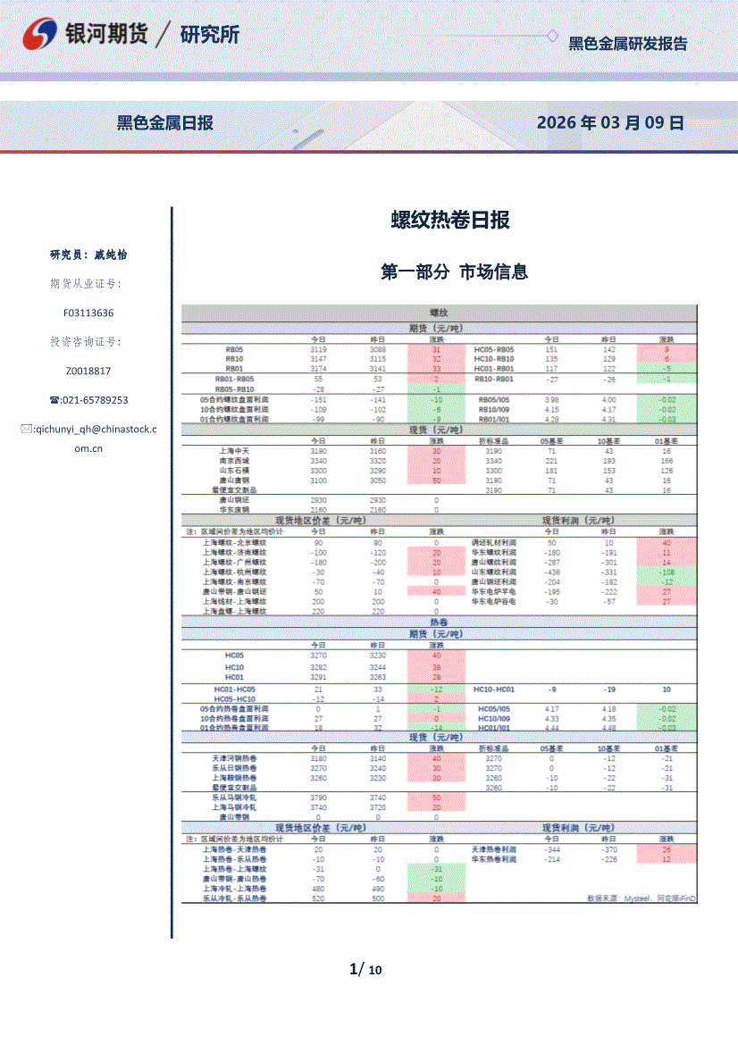 银河期货-钢材:原料供应搅动,钢价持续震荡-260313