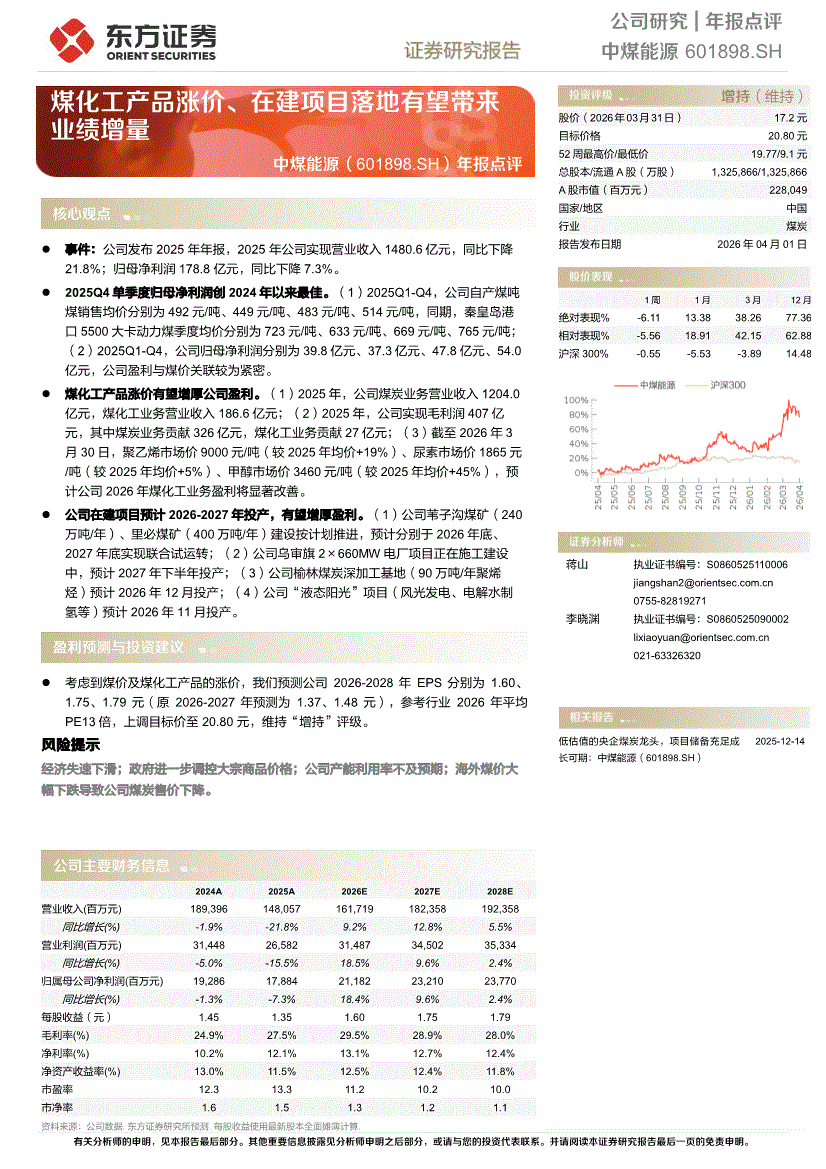 中煤能源:东方证券-中煤能源-601898-年报点评:煤化工产品涨价、在建项目落地有望带来业绩增量-260401