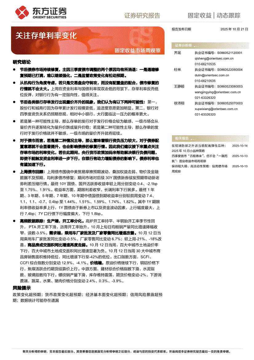 东方证券-固定收益市场周观察:关注存单利率变化-251021