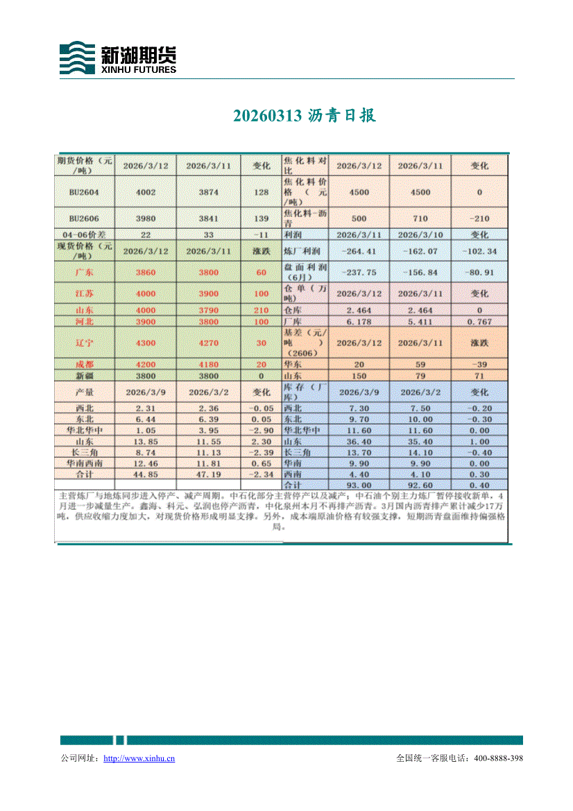 新湖期货-沥青日报-260312