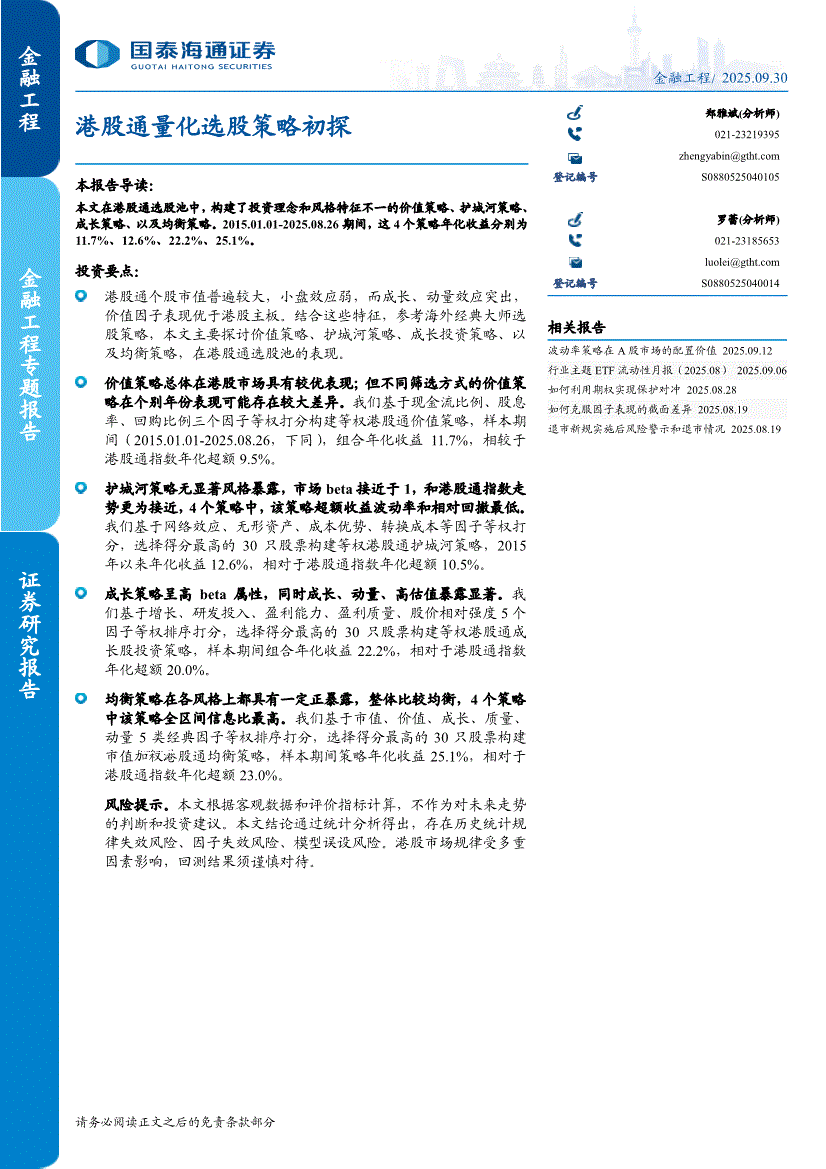 国泰海通证券-金融工程专题报告:港股通量化选股策略初探-250930