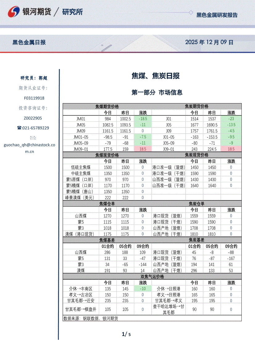 银河期货-双焦:底部有支撑,等待新的驱动-251114