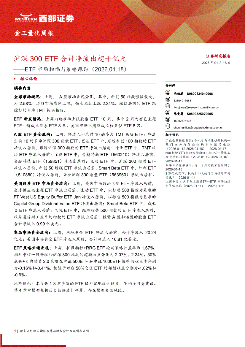 西部证券-ETF市场扫描与策略跟踪:沪深300 ETF合计净流出超千亿元-260118