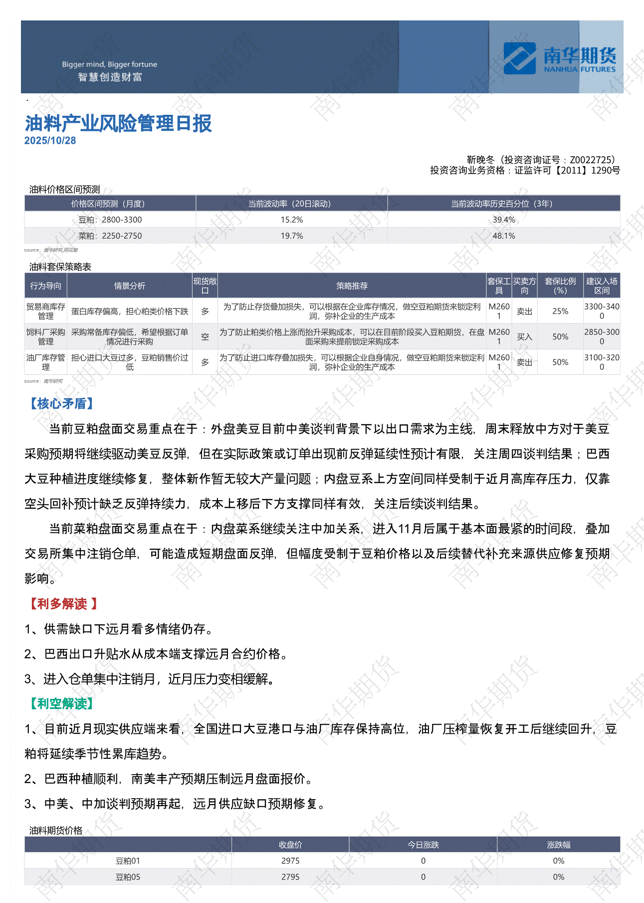 南华期货-油料产业周报:中美谈判结果预期顺利,巴西播种进度回归正常-251028