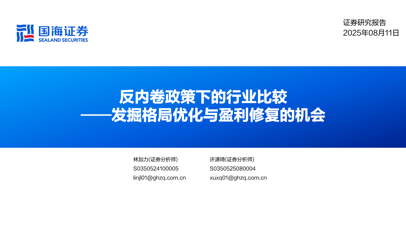 国海证券-反内卷政策下的行业比较:发掘格局优化与盈利修复的机会-250811