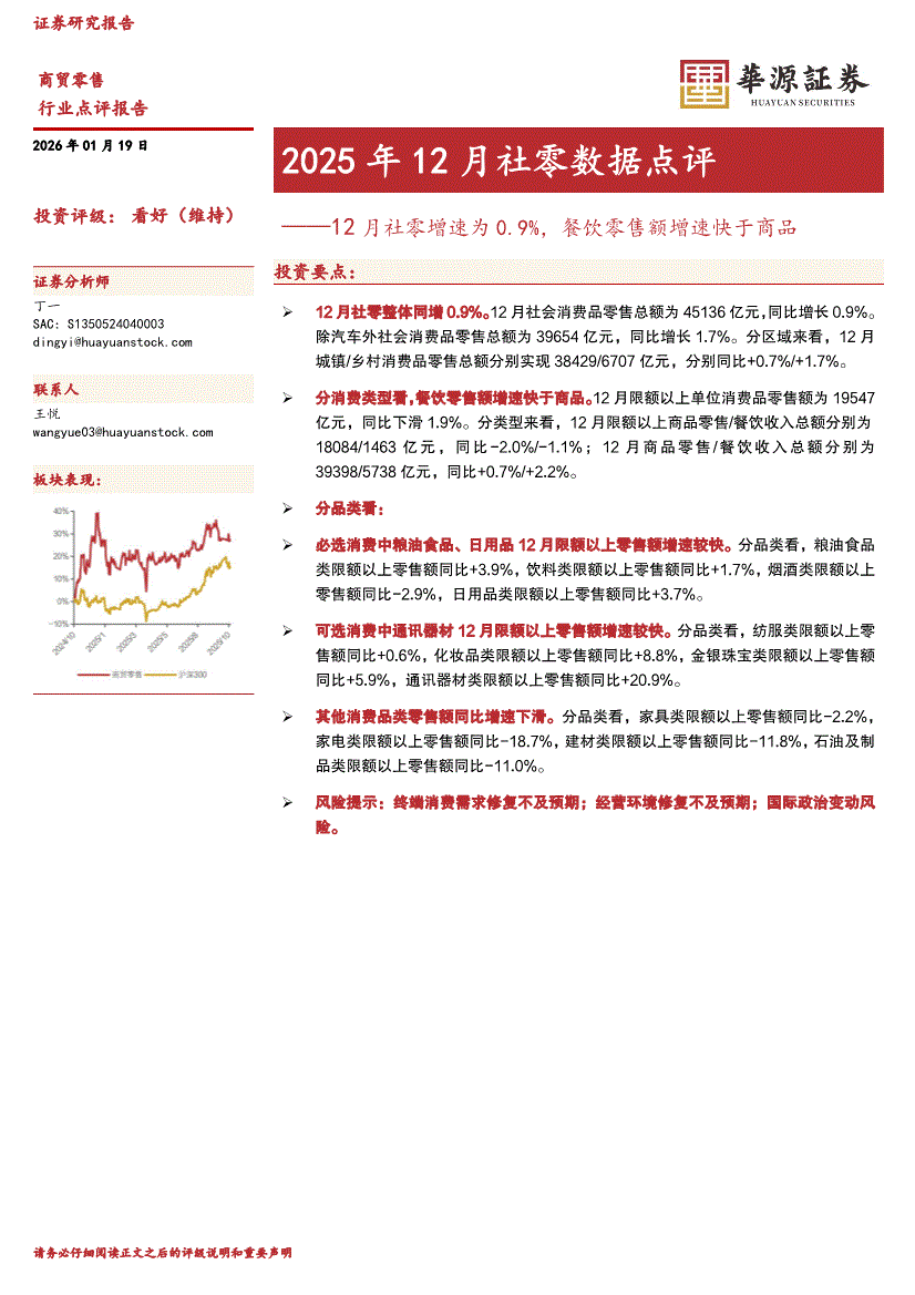 商贸零售行业:华源证券-商贸零售行业2025年12月社零数据点评:12月社零增速为0.9%,餐饮零售额增速快于商品-260119