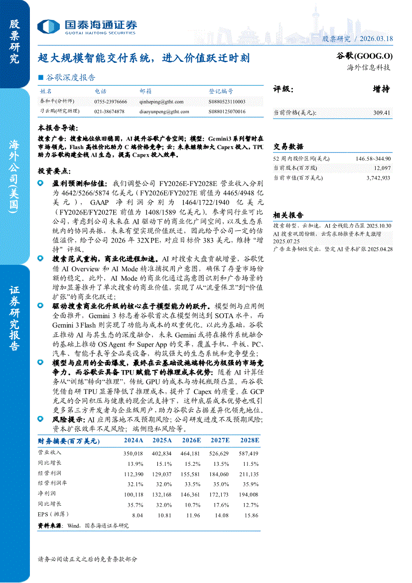 谷歌:国泰海通证券-谷歌-GOOG.US-深度报告:超大规模智能交付系统,进入价值跃迁时刻-260318