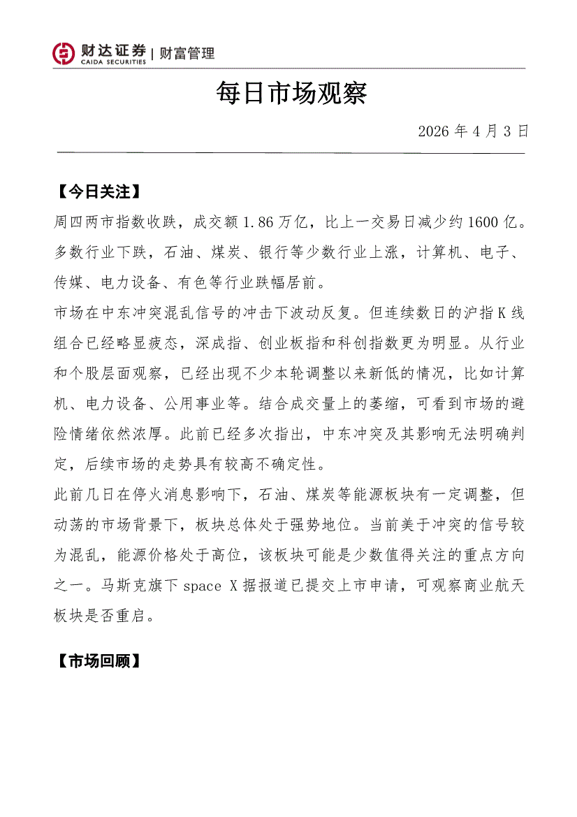财达证券-每日市场观察-260403