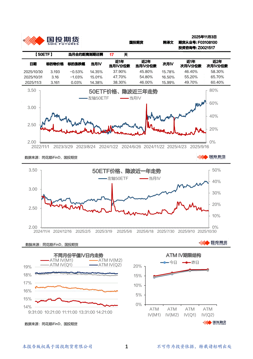 国投期货-金融期权波动率日报-251031