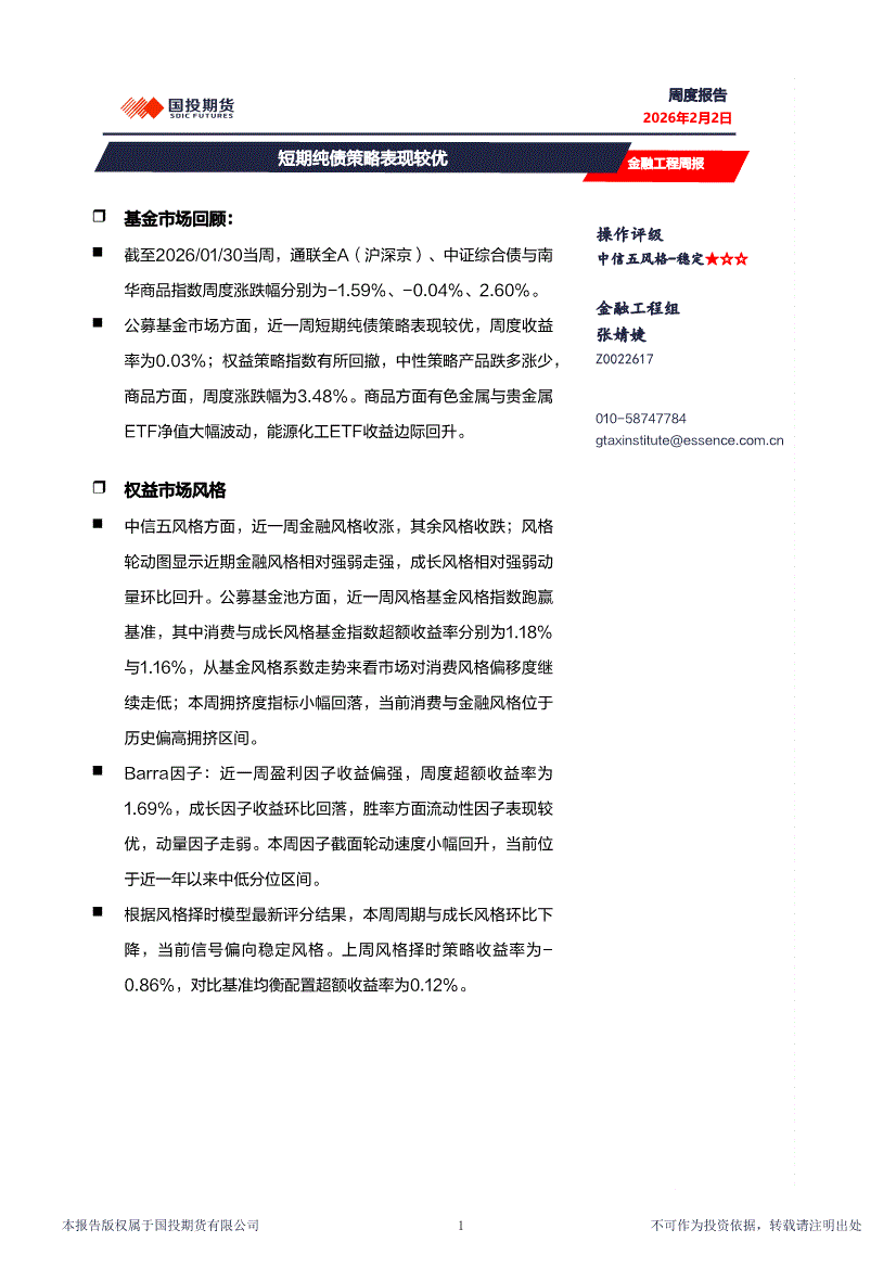 国投期货-金融工程周报:短期纯债策略表现较优-260202