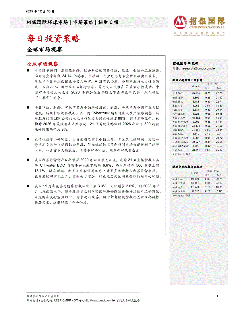 光大证券(国际)-大行晨报:人币短线有望再下一城-251230