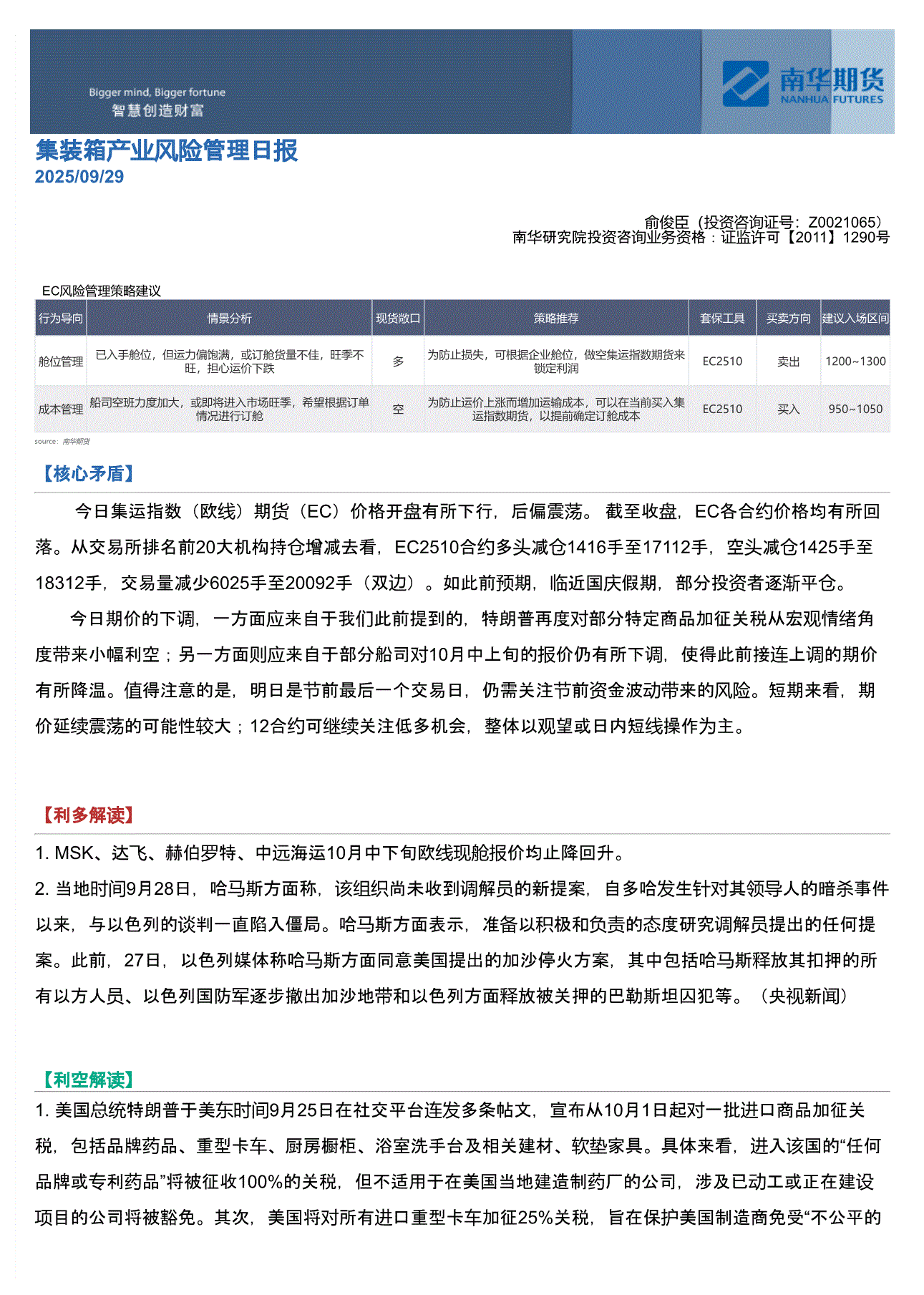 南华期货-集装箱产业风险管理日报-250929