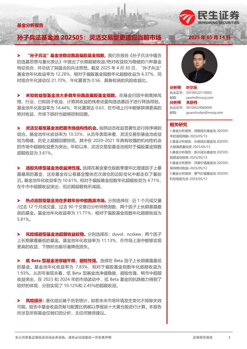 民生证券-基金分析报告:孙子兵法基金池202505,灵活交易型更适应当前市场-250514