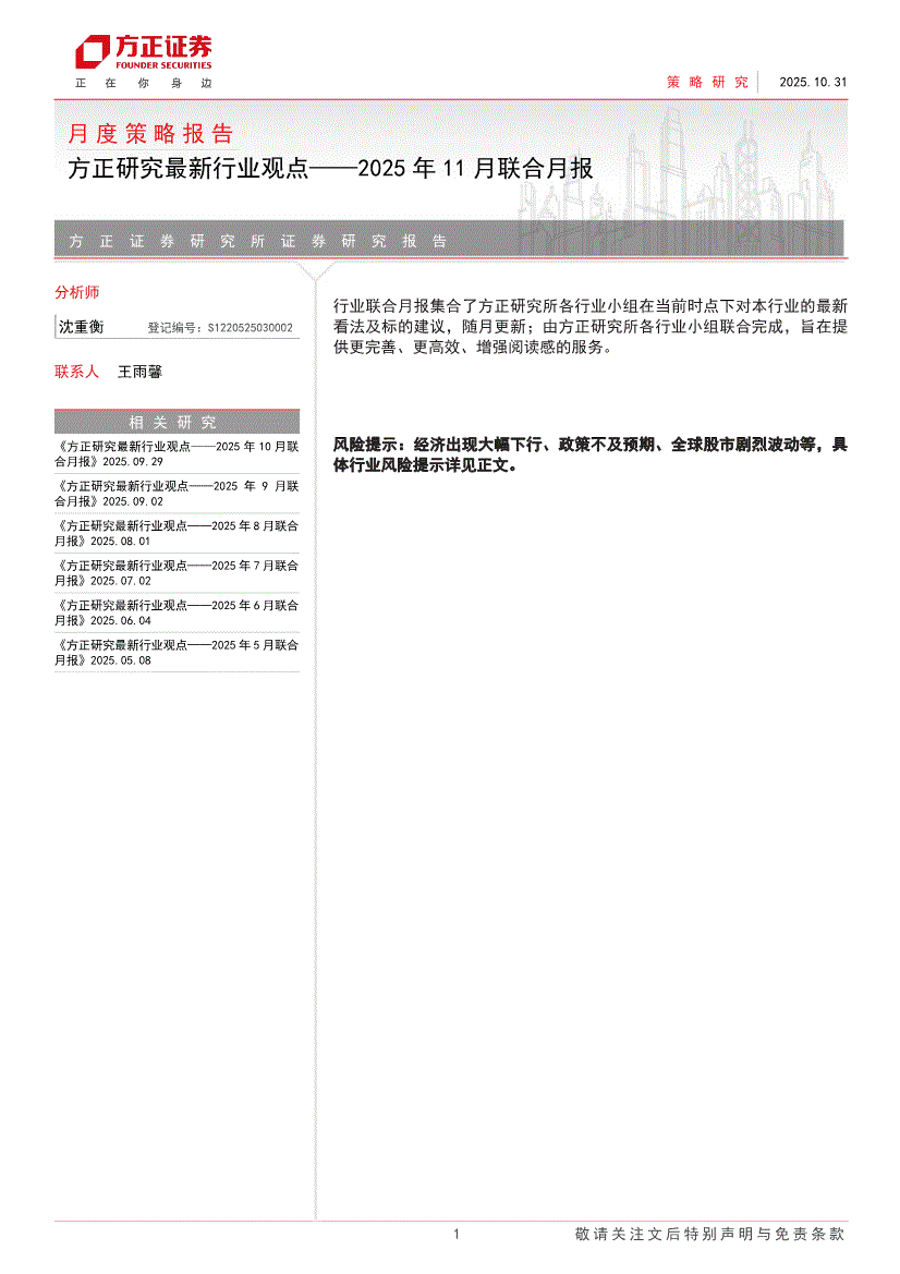 方正证券-方正研究最新行业观点——2025年11月联合月报-251031