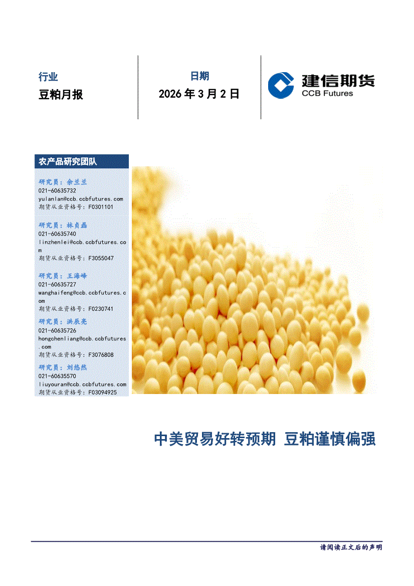 建信期货-豆粕月报:中美贸易好转预期,豆粕谨慎偏强-260302