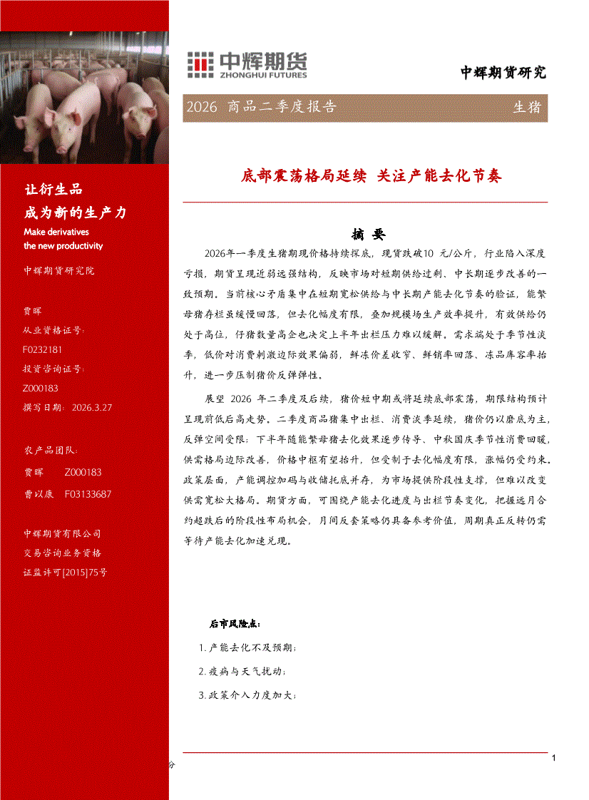 中辉期货-生猪2026年商品二季度报告:底部震荡格局延续,关注产能去化节奏-260327