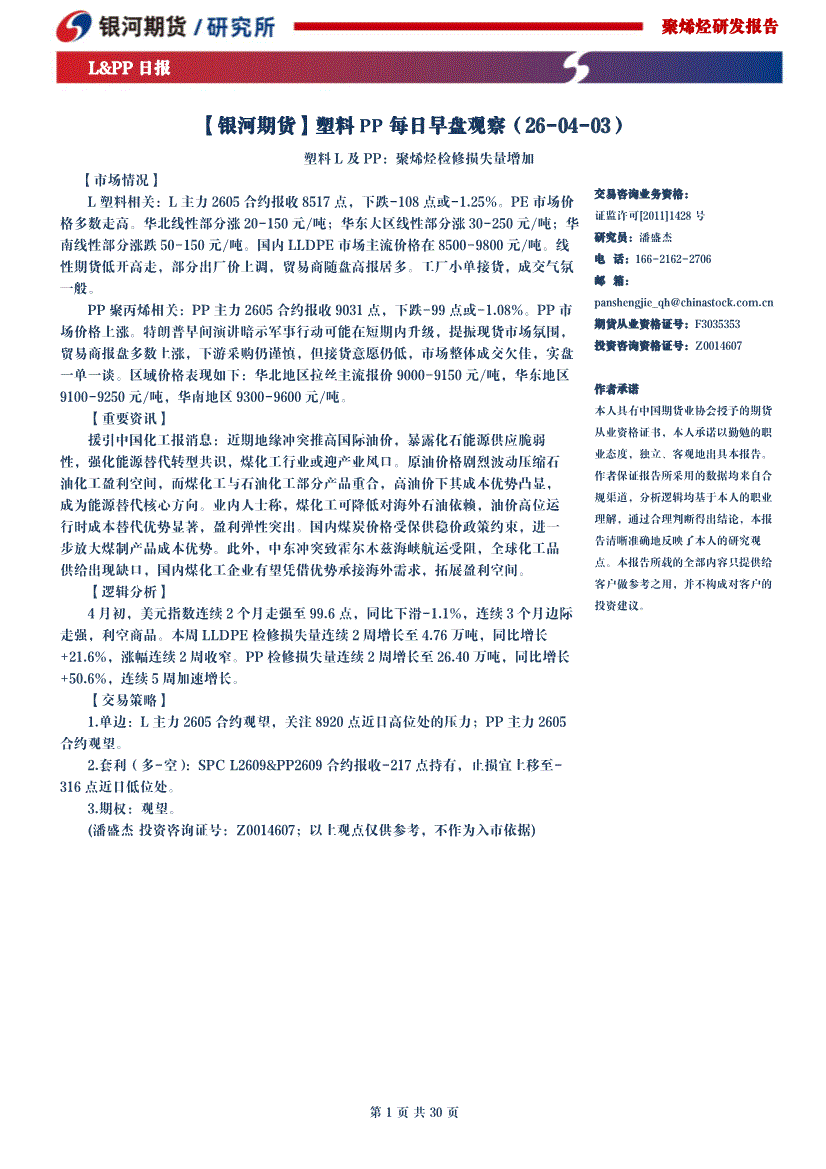 银河期货-塑料PP每日早盘观察-260403