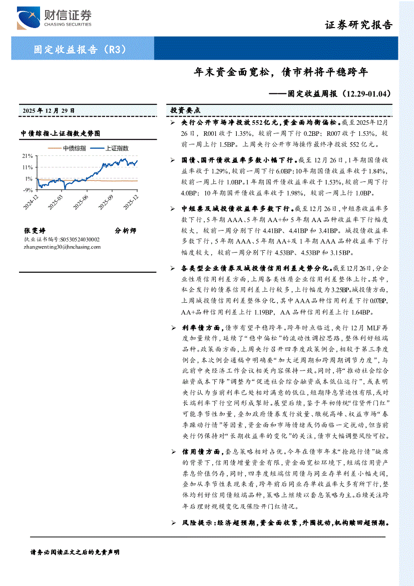财信证券-固定收益周报:年末资金面宽松,债市料将平稳跨年-251229