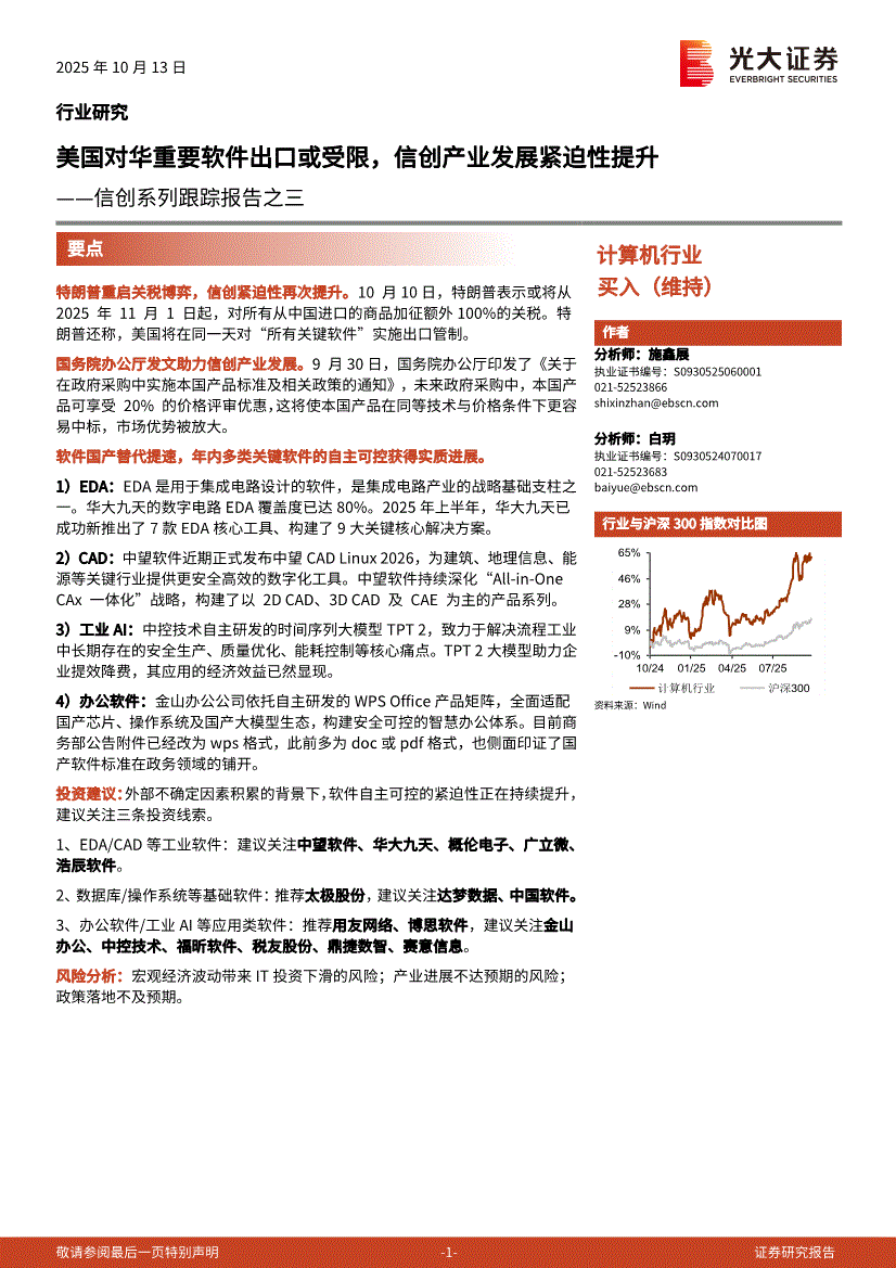 计算机行业:光大证券-计算机行业信创系列跟踪报告之三:美国对华重要软件出口或受限,信创产业发展紧迫性提升-251013