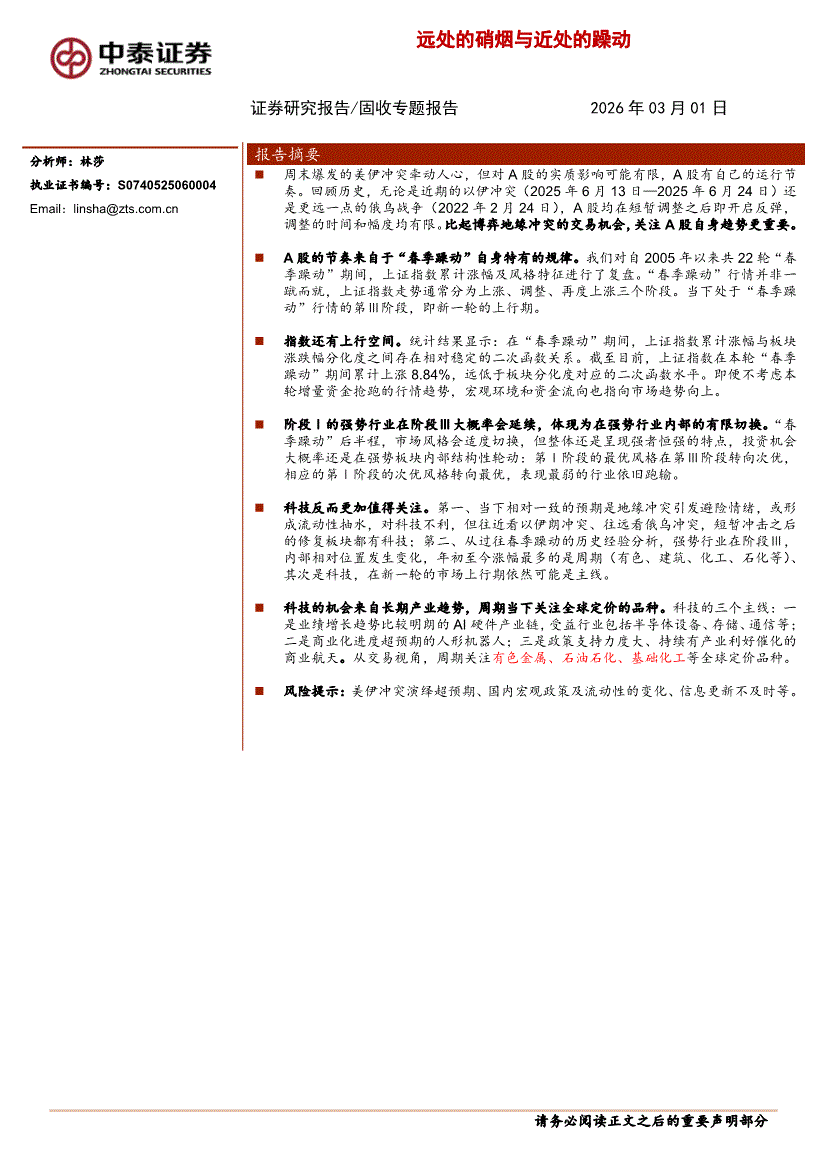 中泰证券-固收专题报告:远处的硝烟与近处的躁动-260301