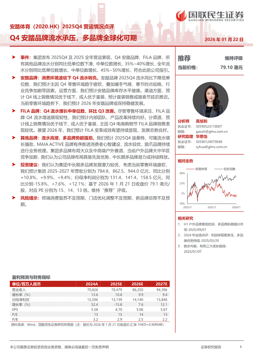 安踏体育:国联民生证券-安踏体育-2020.HK-2025Q4营运情况点评:Q4安踏品牌流水承压,多品牌全球化可期-260122