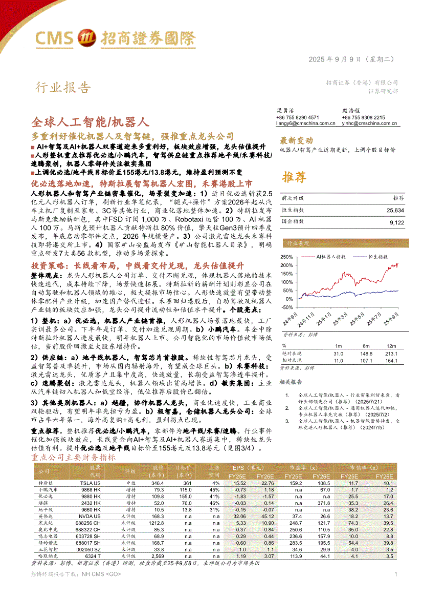 人工智能/机器人行业:招商证券(香港)-全球人工智能/机器人行业:多重利好催化机器人及智驾链,强推重点龙头公司-250909