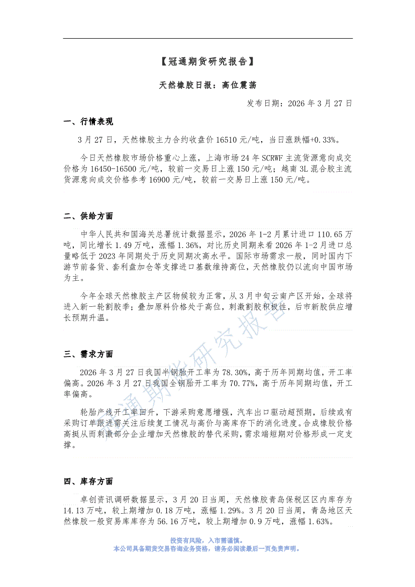 冠通期货-天然橡胶日报:震荡偏弱-260323