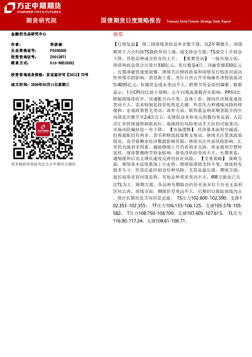 方正中期期货-国债期货日度策略报告-260211